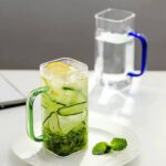 لیوان مربع پیرکس با دسته رنگی