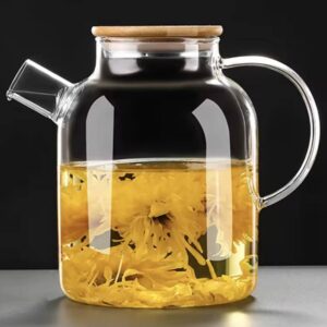 قوری ۱۵۰۰ میل شفاف درب چوبی